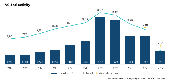 The VC boom is over - In Europe, deal value has fallen from €105B in 2021 to just €29B in 2025. Capital is still available, but it now comes with far higher expectations.