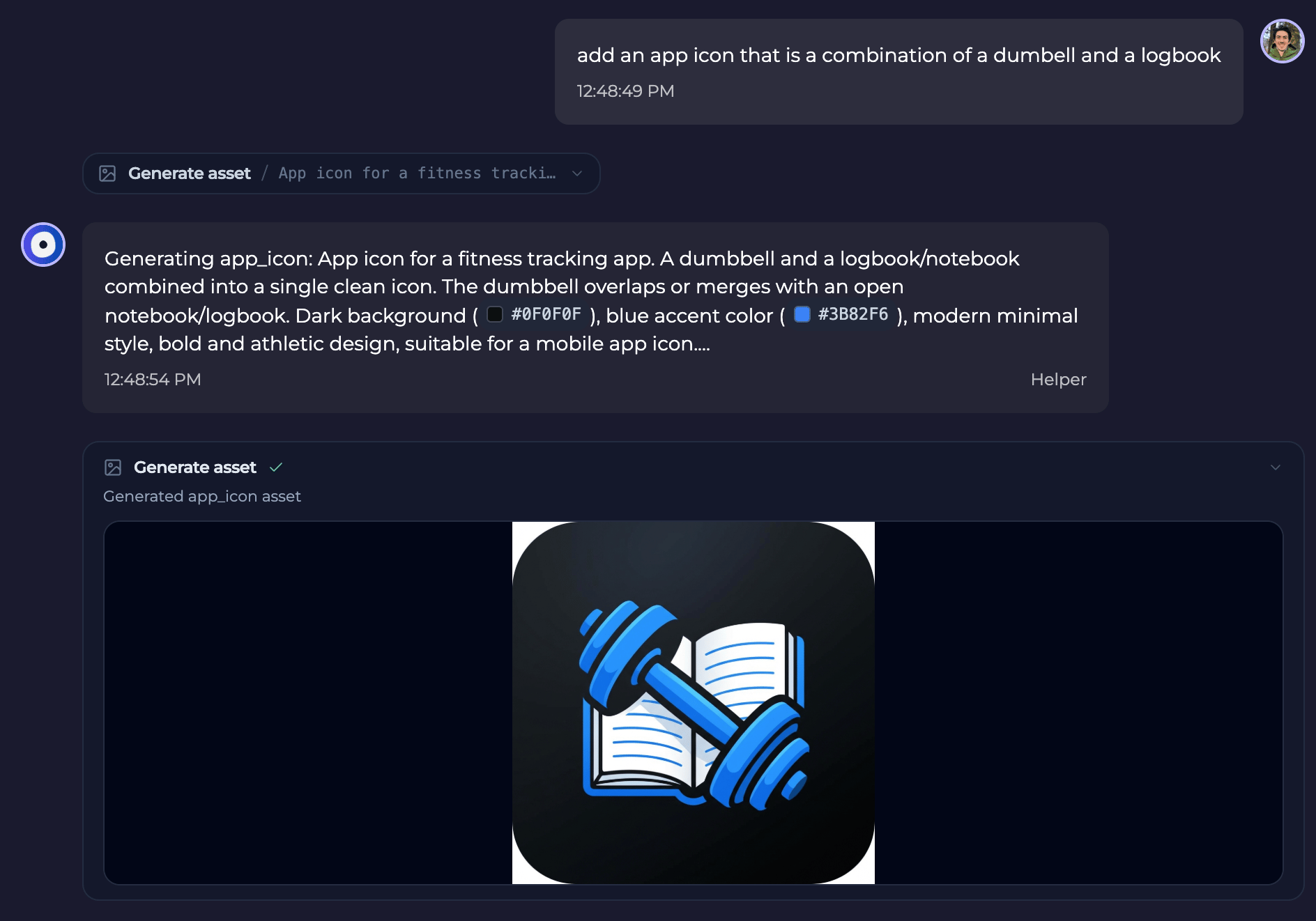 You can also upload your own images if you have existing branding (up to 20 files per project). Once an asset is in your project, tell the AI where to use it: "set the uploaded logo as the header image" or "use the new icon as the app icon."